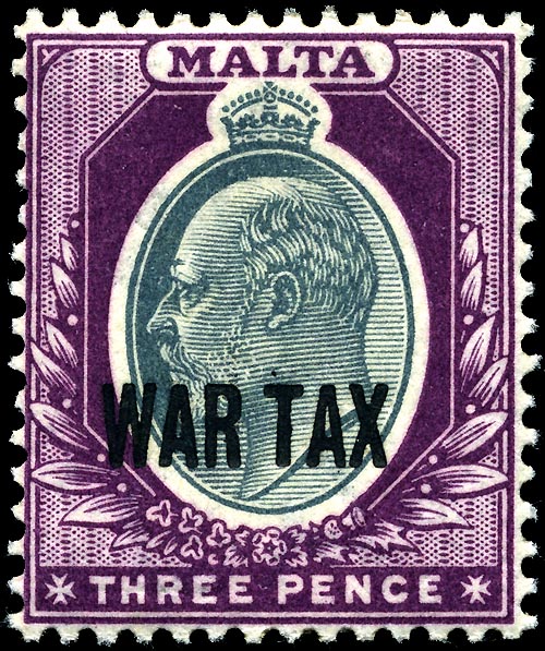 During the wartime a lot of tax stamps were produced. New issues were rarely printed at this time that is why it was more convenient to overprint the existed items with surcharges or a simple inscription such as "War Tax".